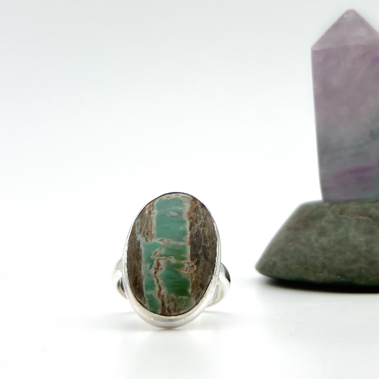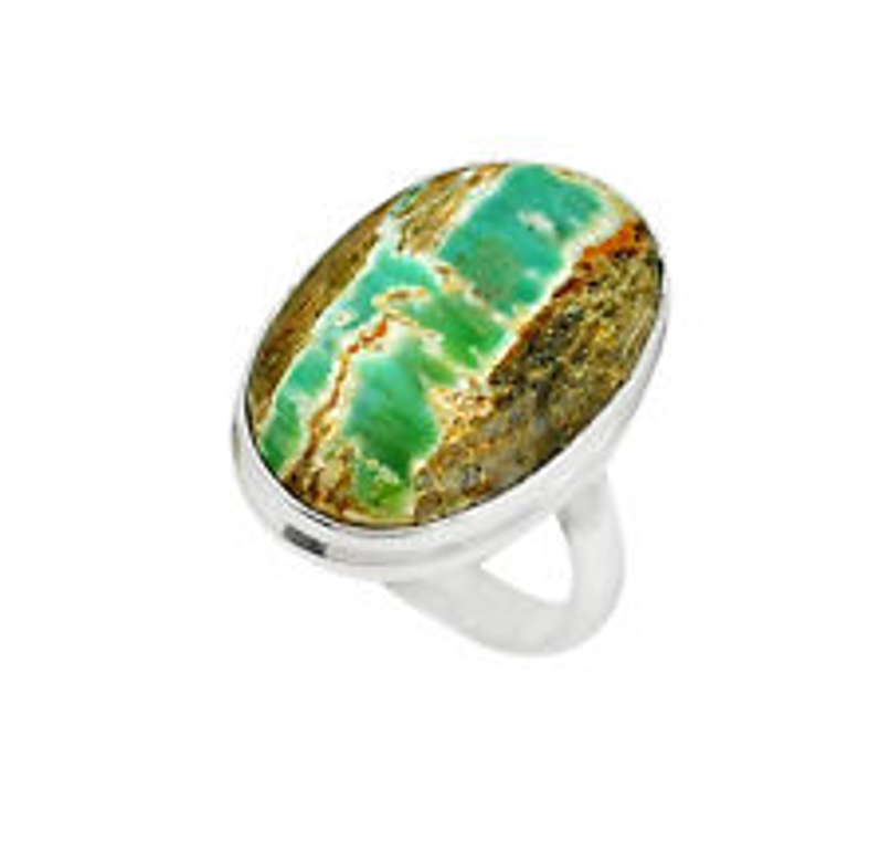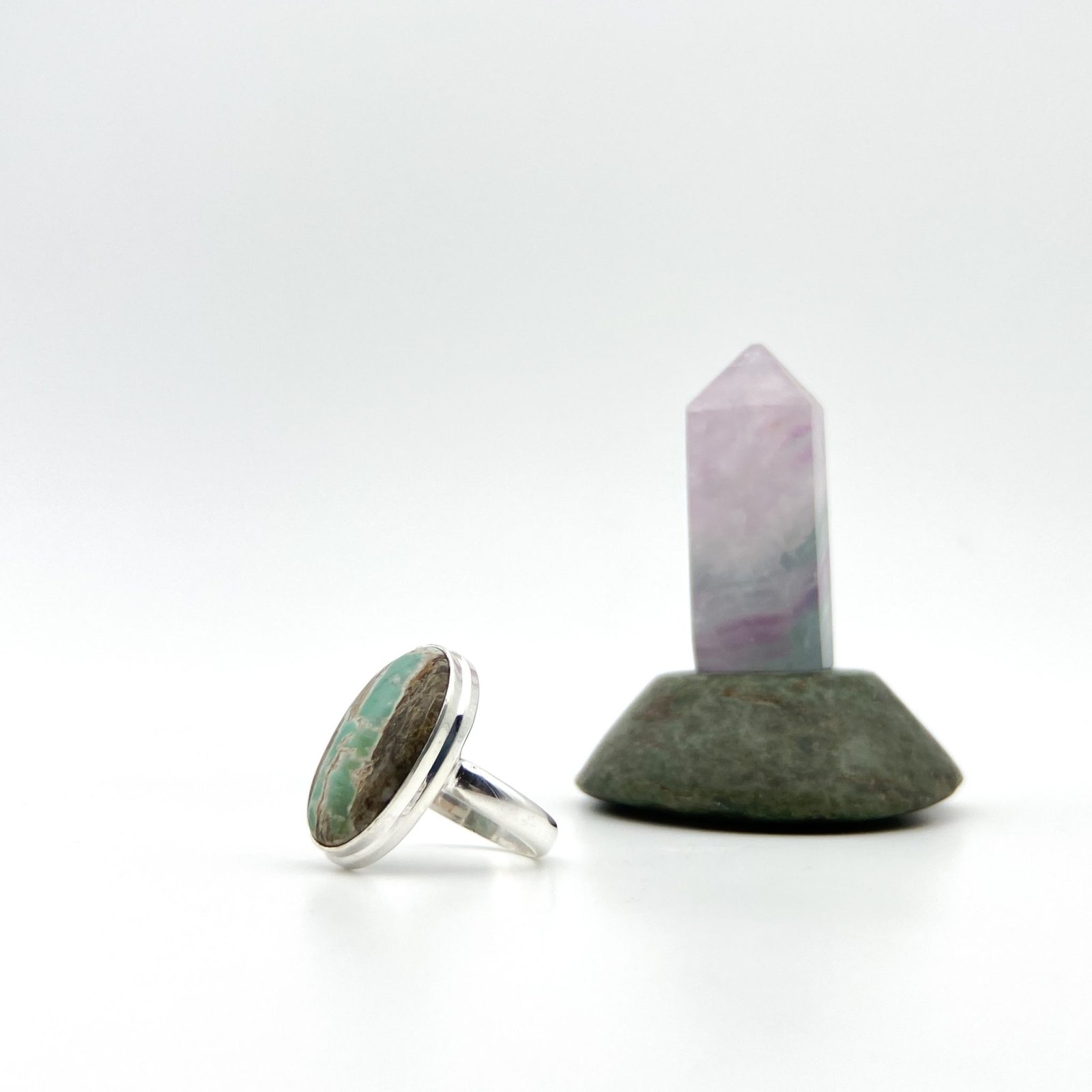 Anillo Variscita Talla 8. El trabajo de montaje de las piedras se hace con cuidado y detalle en el taller para que luzcan su esplendor.