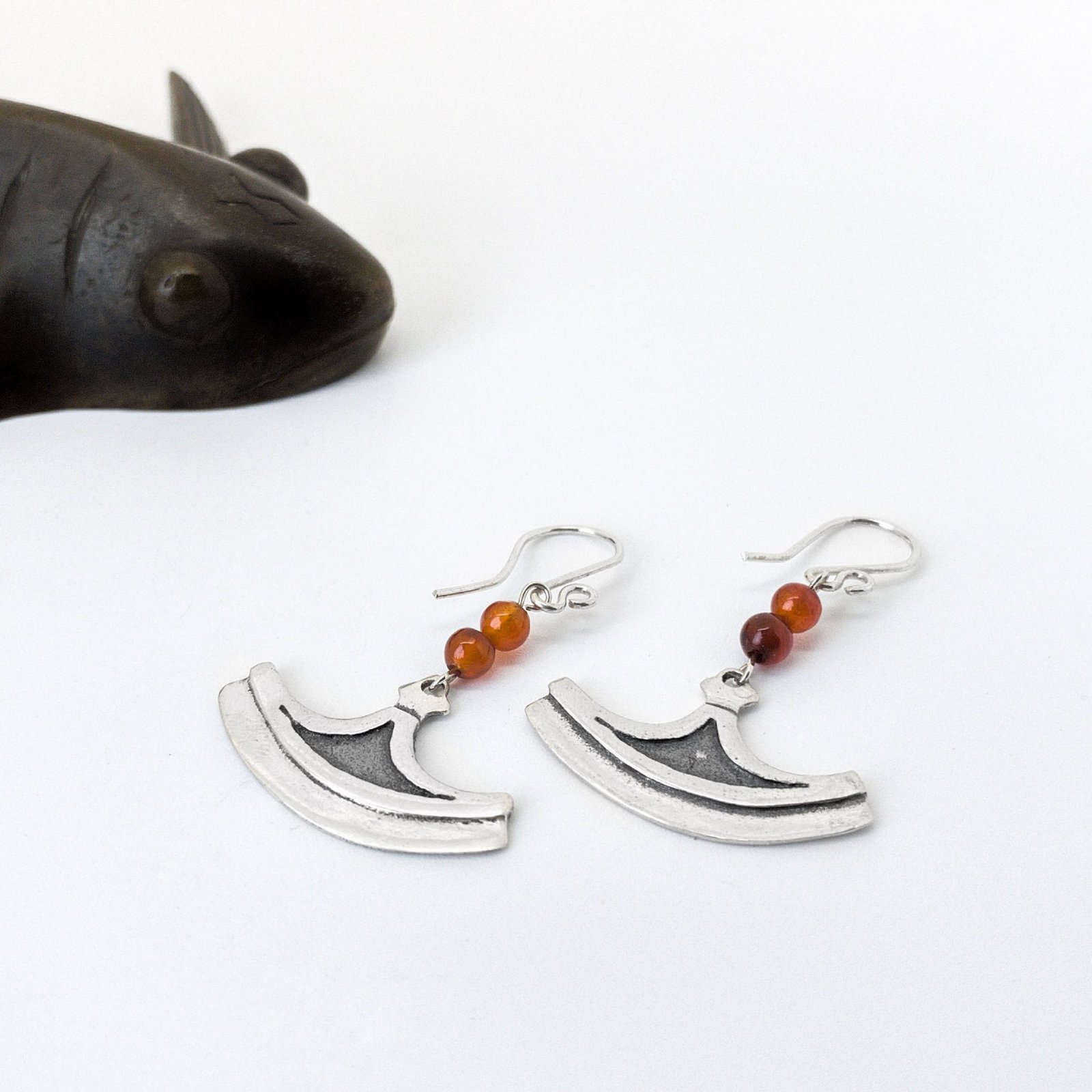 Aretes inspirados en objetos rituales de la etnia polinesia de los maories.