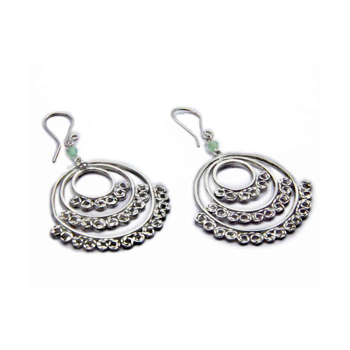 Aretes elaborados con la antigua y versátil técnica de la filigrana, manifestada en tres círculos que se contienen uno a otro.