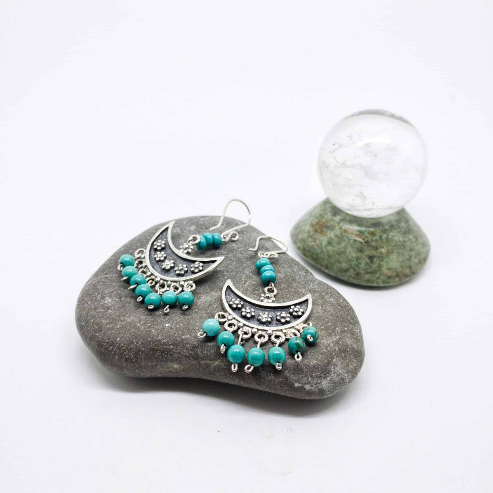 Sé el primero en valorar “Aretes Hindú Luna con Piedras Colgantes”