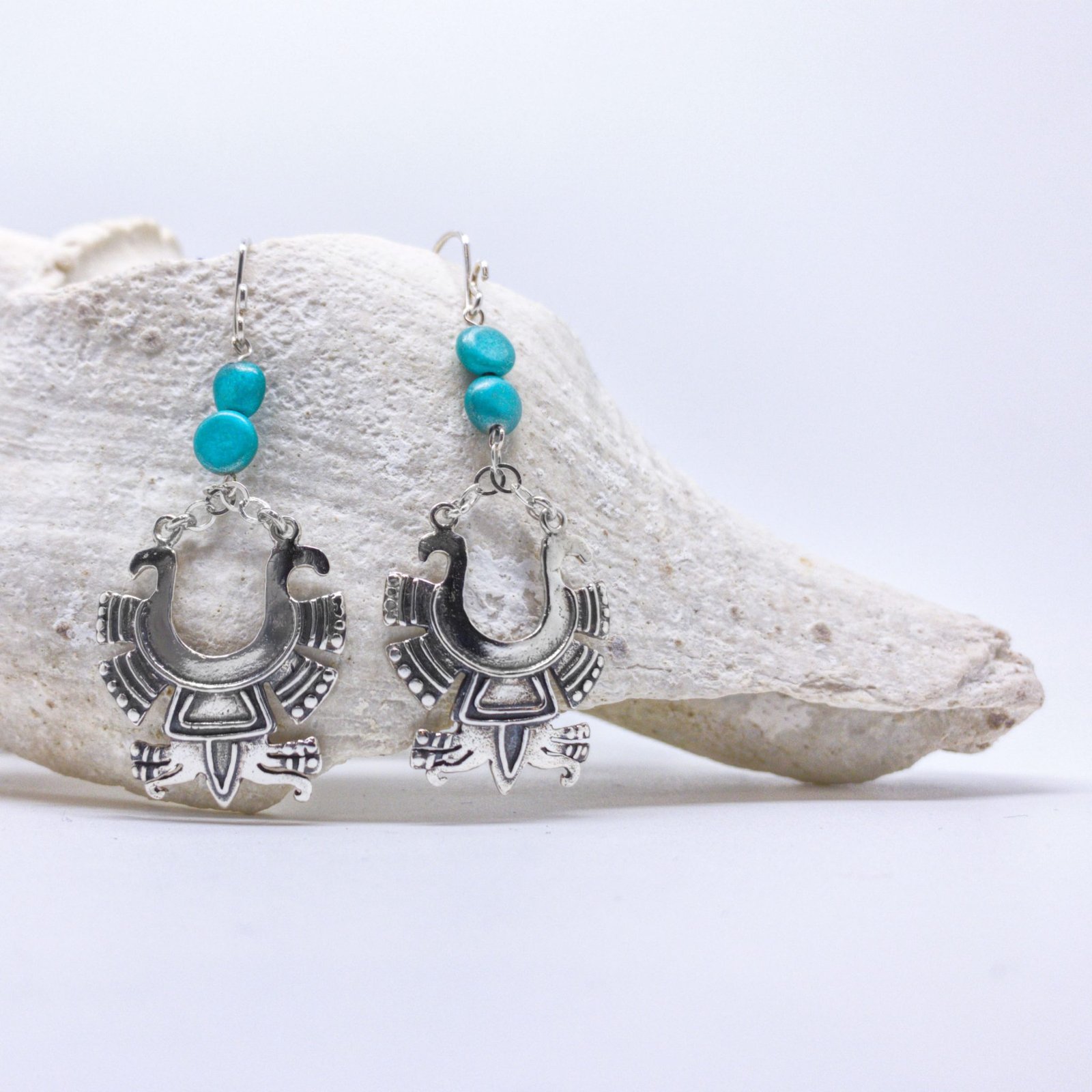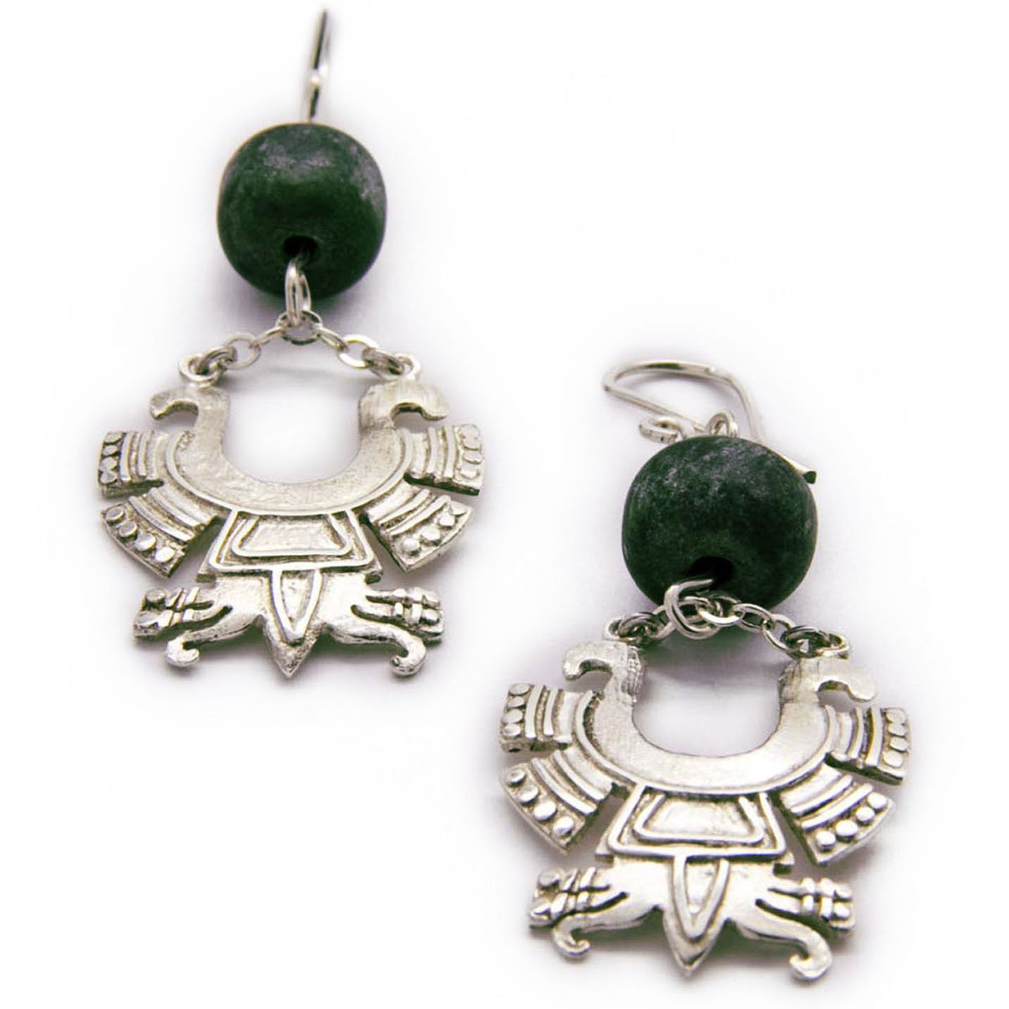 Aretes que son reproducción de una pieza a la que se ha llamado Nariguera Mariposa (Yacapapalotl) insignia de Xochiquetzal, la joven diosa de las flores, la sensualidad y patrona de los artistas plateros, pintores, escultores y tejedores de plumas. Fue la primera mujer que murió en la guerra.