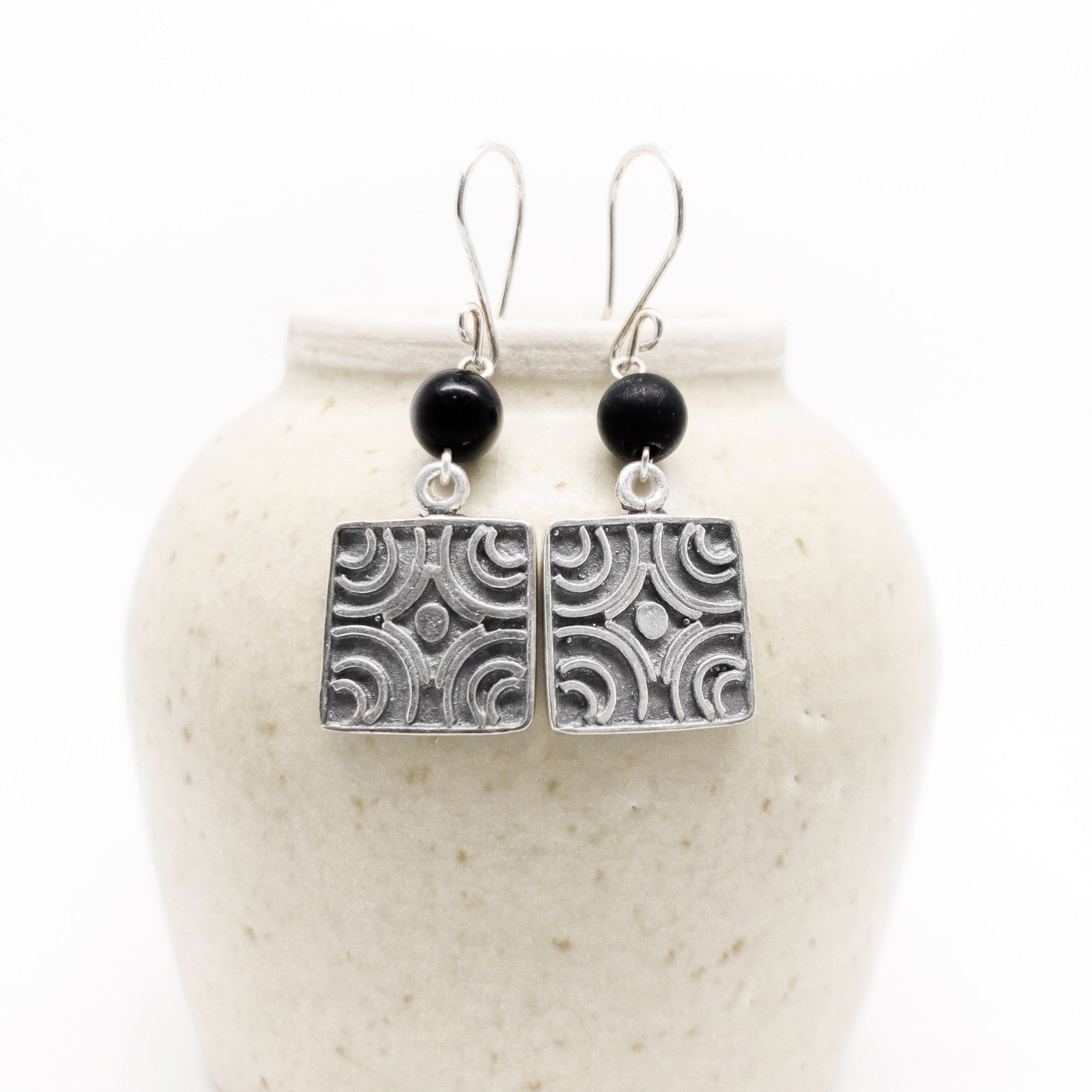 Estos aretes son una adaptación de un sello prehispánico en forma de cilindro, encontrado en la Ciudad de México que representa diseño de cuadrado.