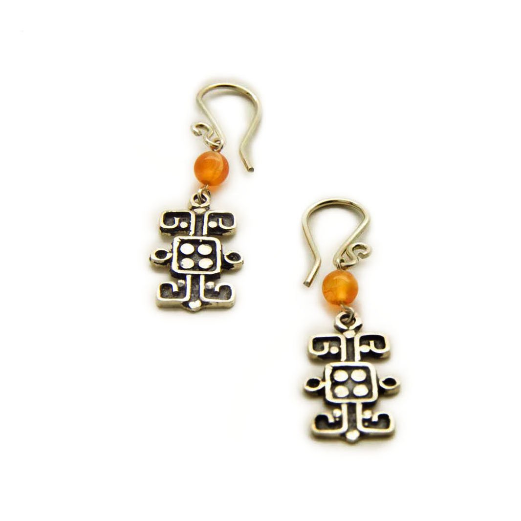 Estos aretes son una adaptación de un sello decorativo prehispánico encontrado en Los Tuxtlas, Veracruz.