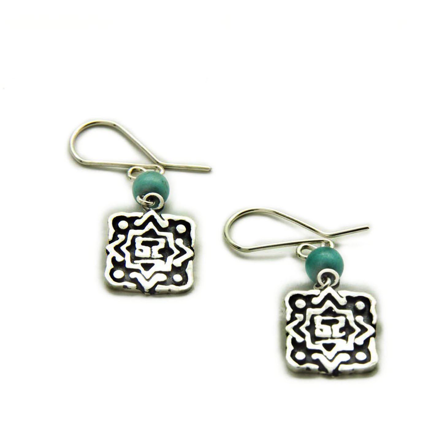 Estos aretes son una adaptación de un sello prehispánico encontrado en la Ciudad de México, que representa un Emblema Solar.