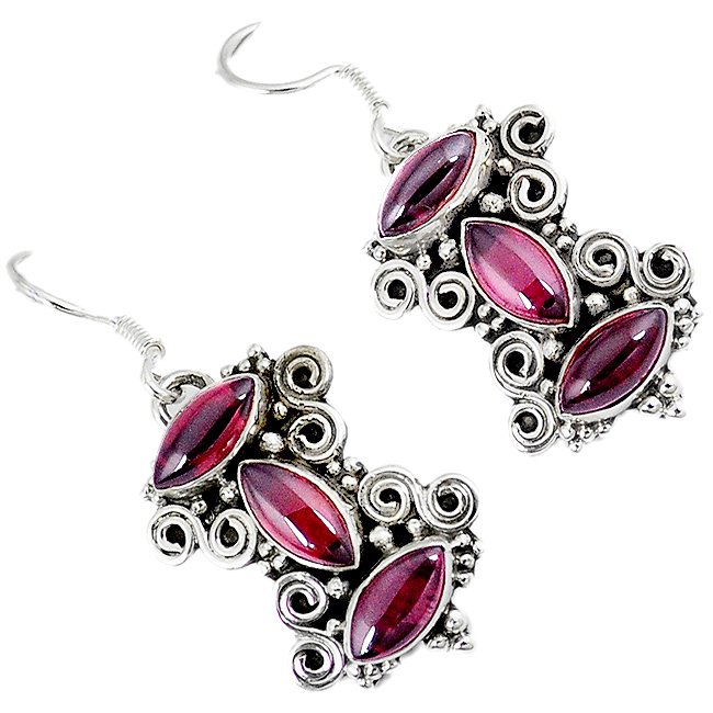 Aretes Tres Granates. El trabajo de montaje de las piedras se hace con cuidado y detalle en el taller para que luzcan su esplendor.