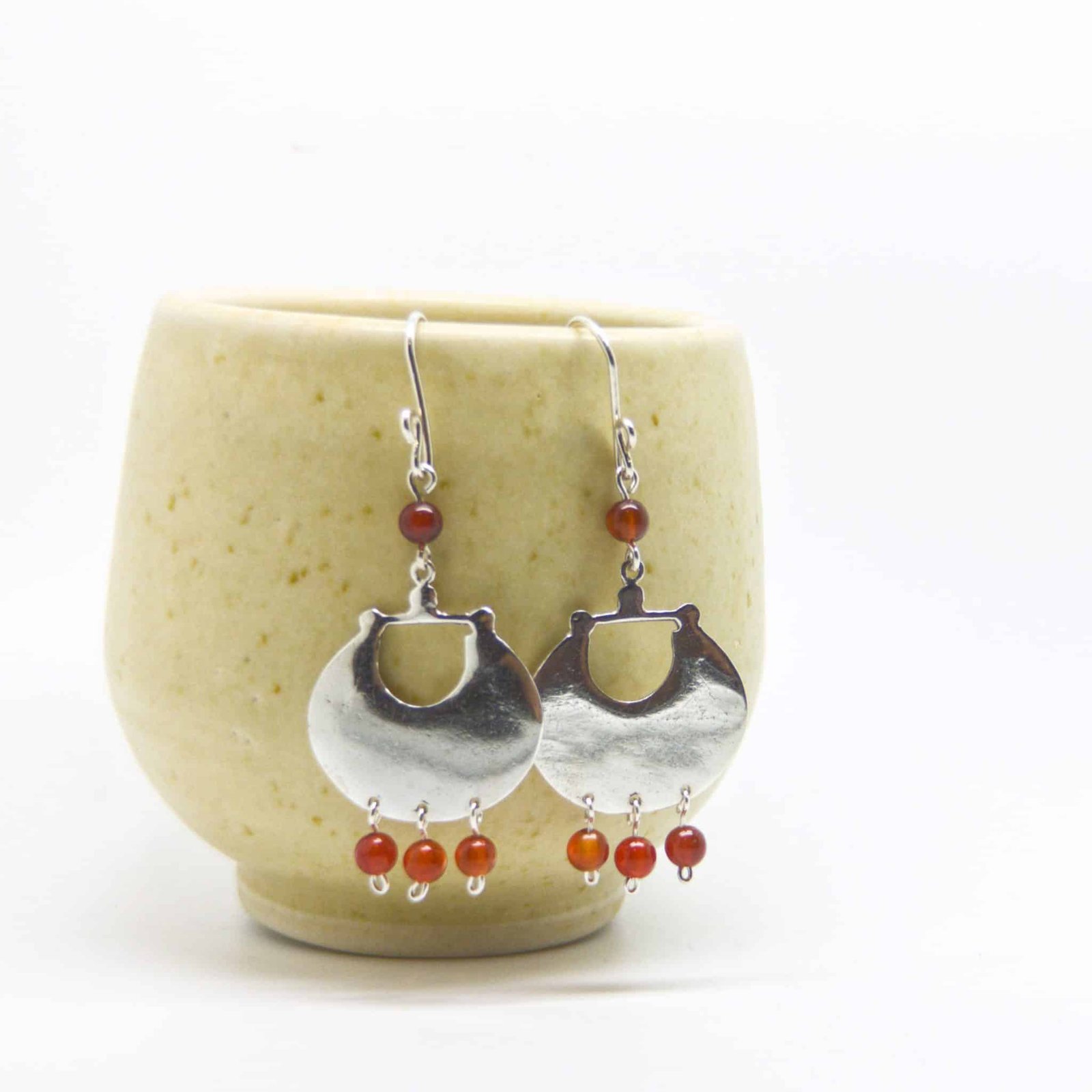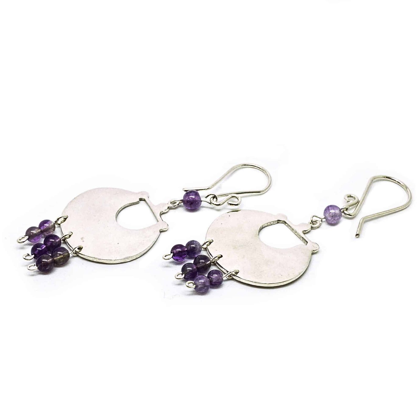 Arracadas construidas con placas de plata que le dan un toque moderno y piedras naturales.