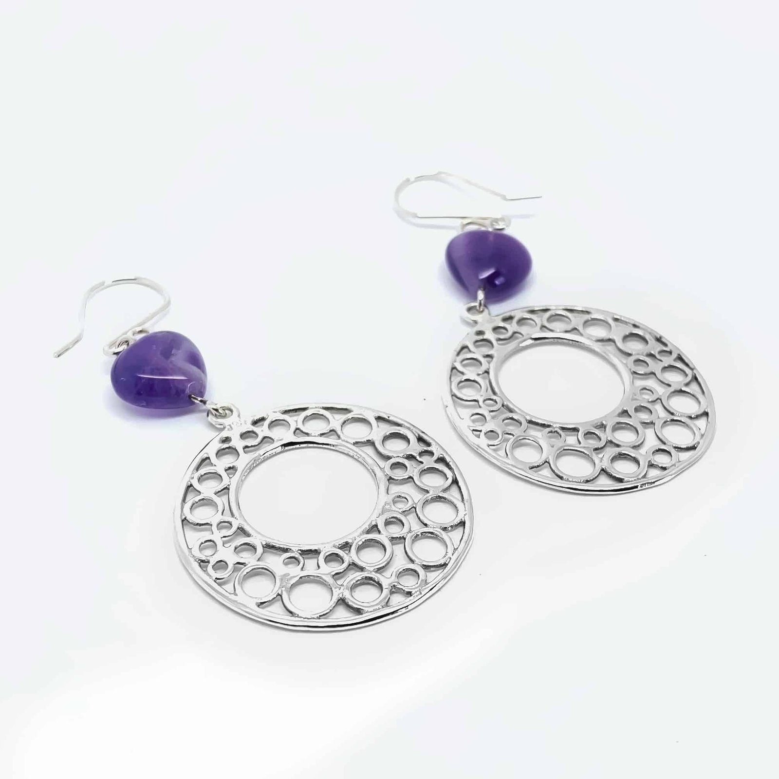 Arracadas Medianas Argollas, elaboradas de manera artesanal en nuestro taller mediante técnicas orfebres tradicionales. Se utiliza plata Sterling Ley 925 y piedras naturales auténticas.