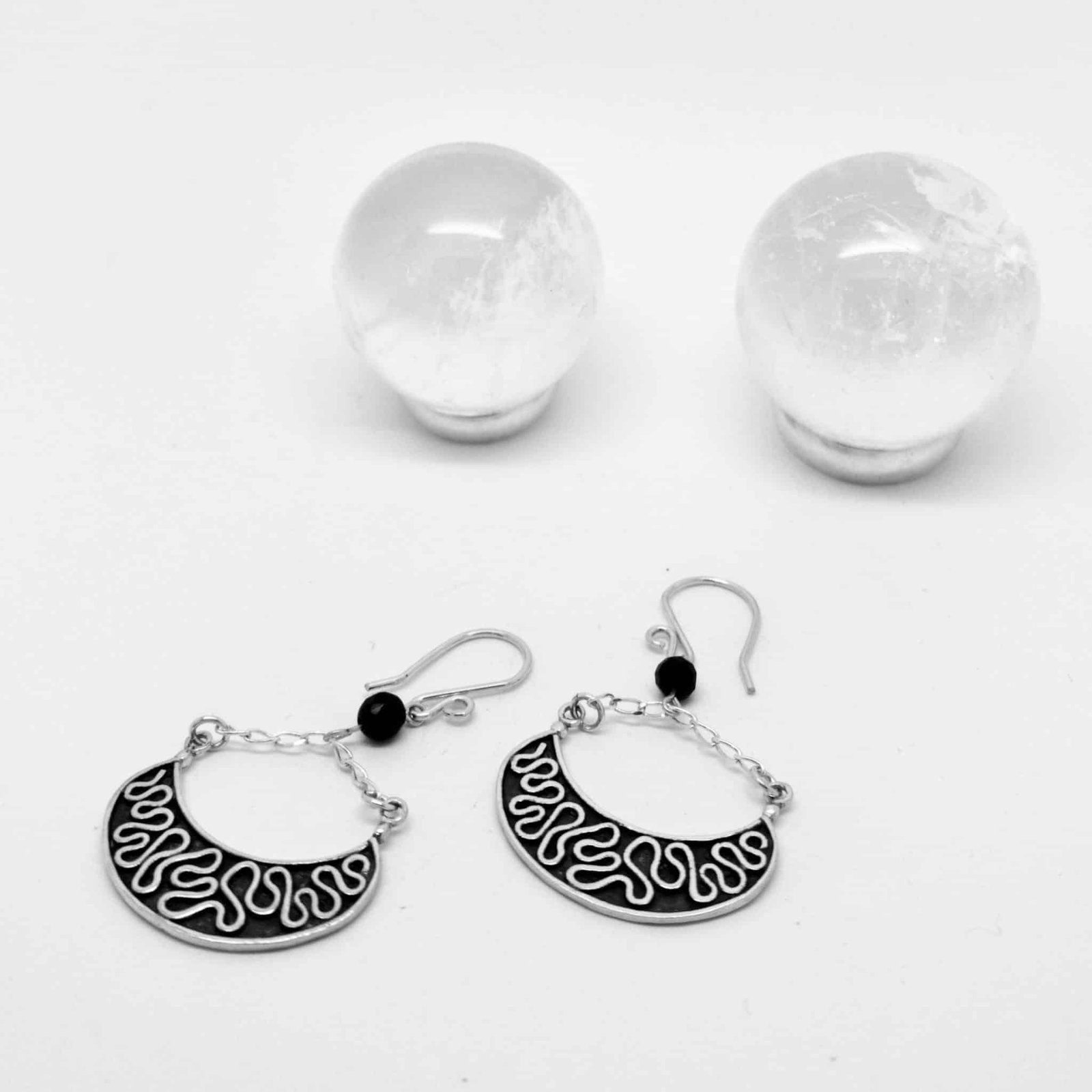 Arracadas que, como un juego de diseño, contienen una línea ondulada en su interior.