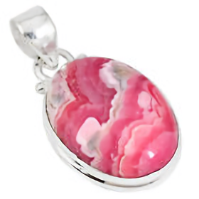 Este dije expone en todo su esplendor un bello ejemplar de rodocrosita, mineral considerado de los más “frágiles” que muestra delicadas variaciones de color rosa, también es la piedra nacional de Argentina.
