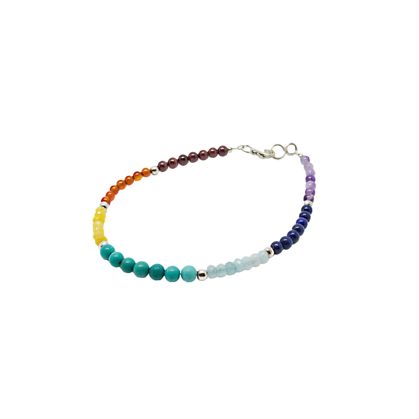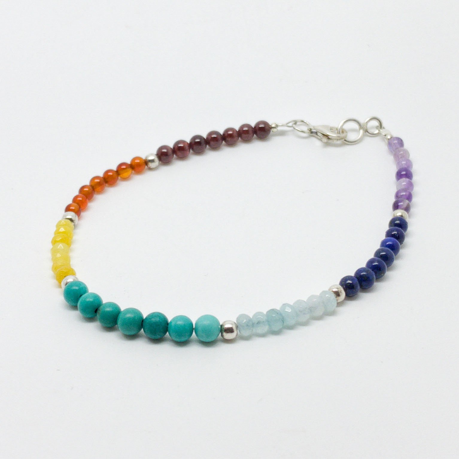Pulsera Arcoíris, elaborada de manera artesanal en nuestro taller. Las piedras naturales se montan con cuidado para que luzcan todo su esplendor.