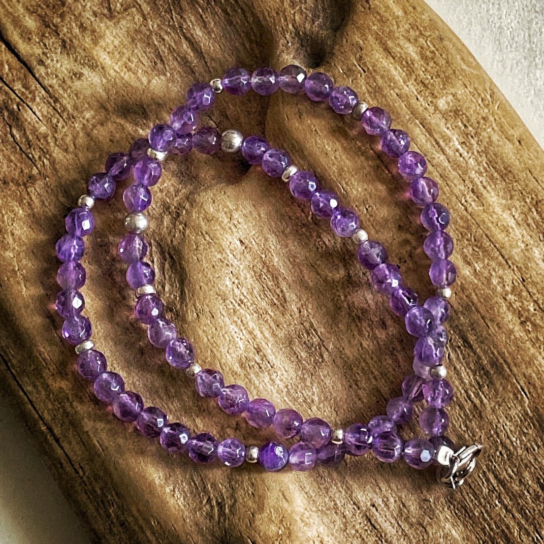 Pulsera doble de piedras facetadas. Elije entre amatista, granate, lapislázuli y ágata musgosa.